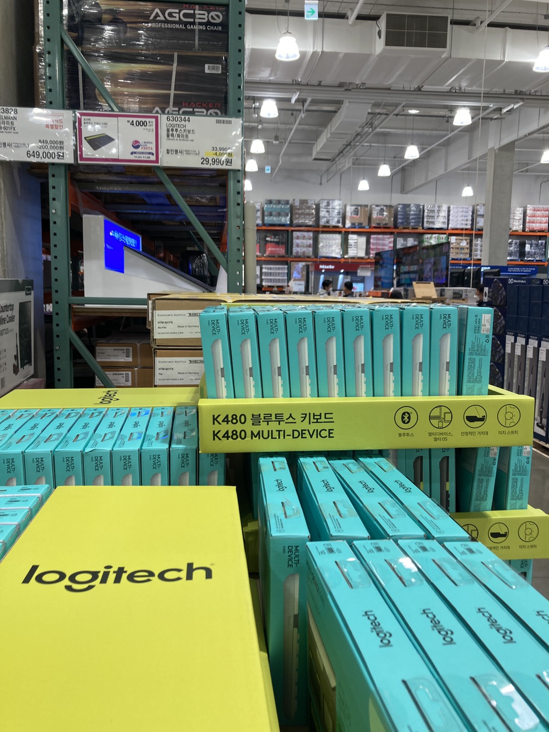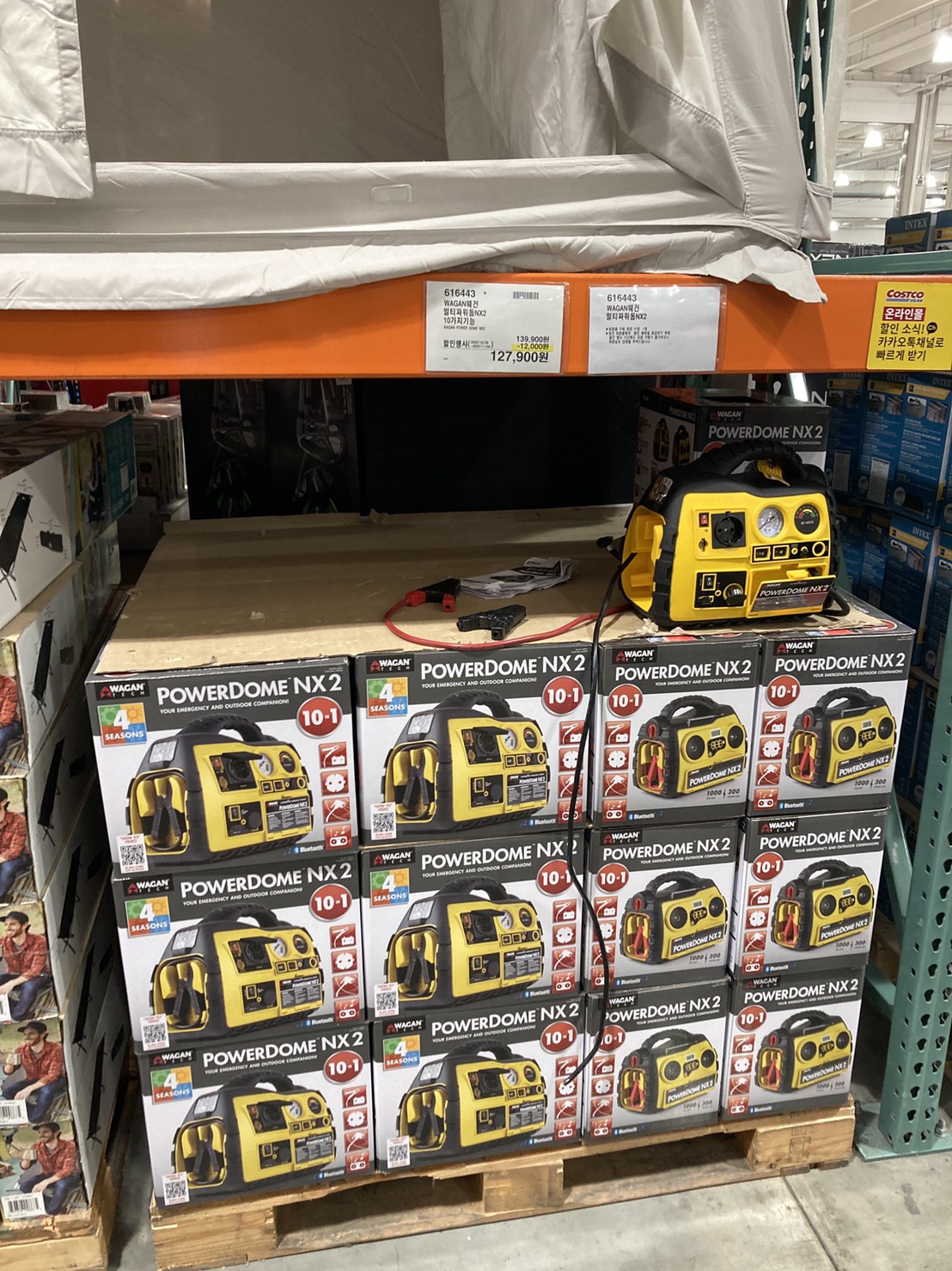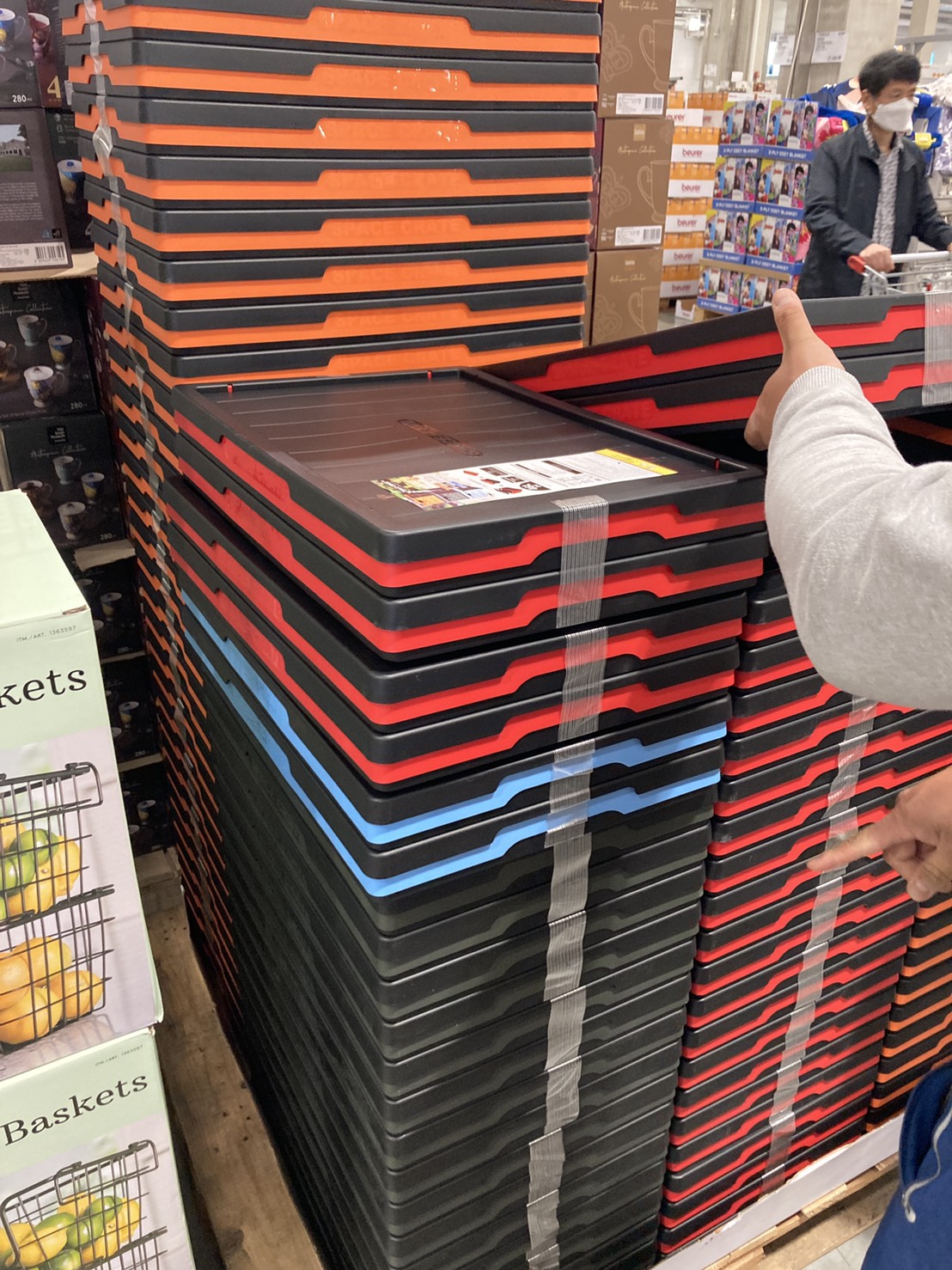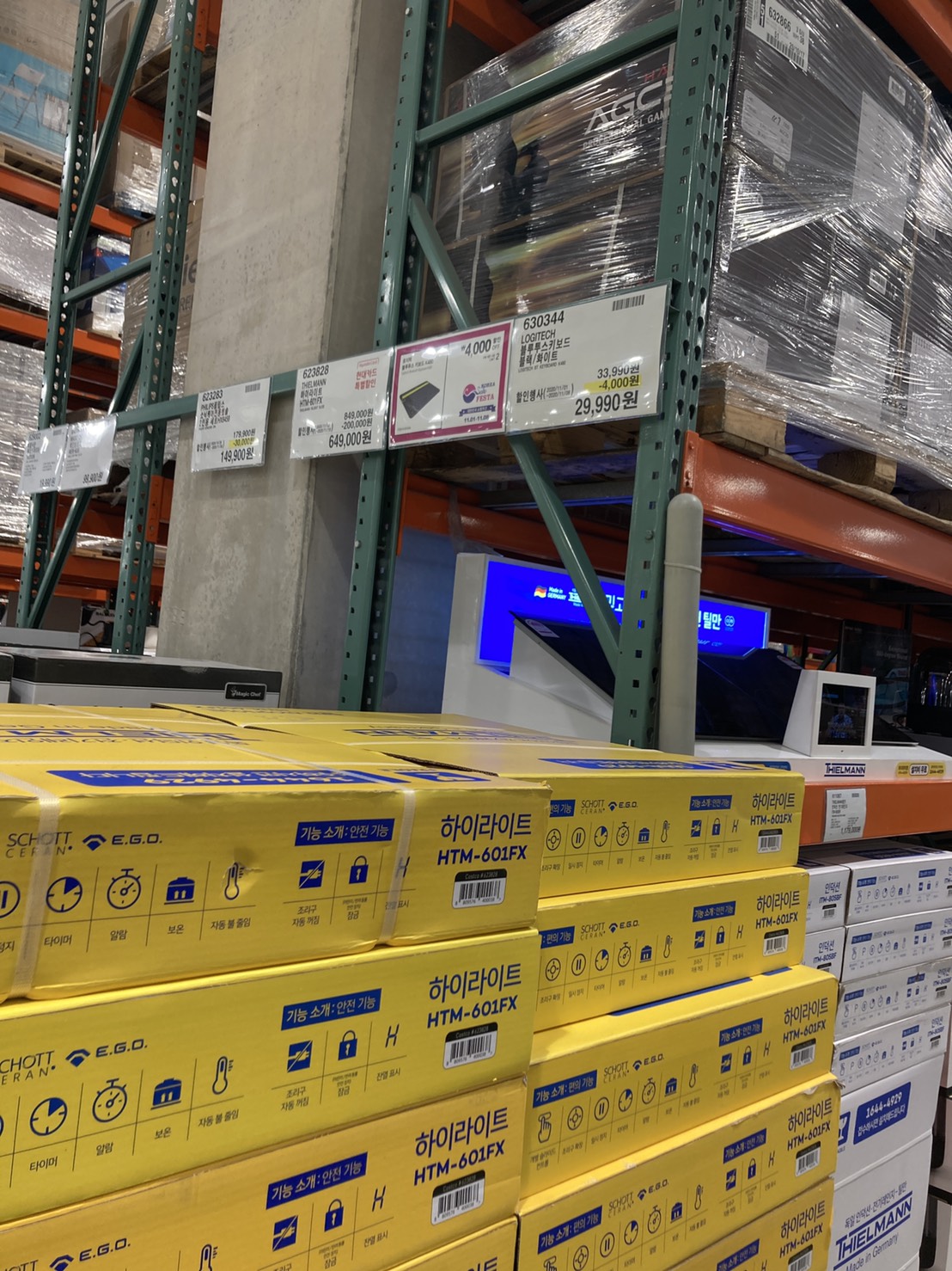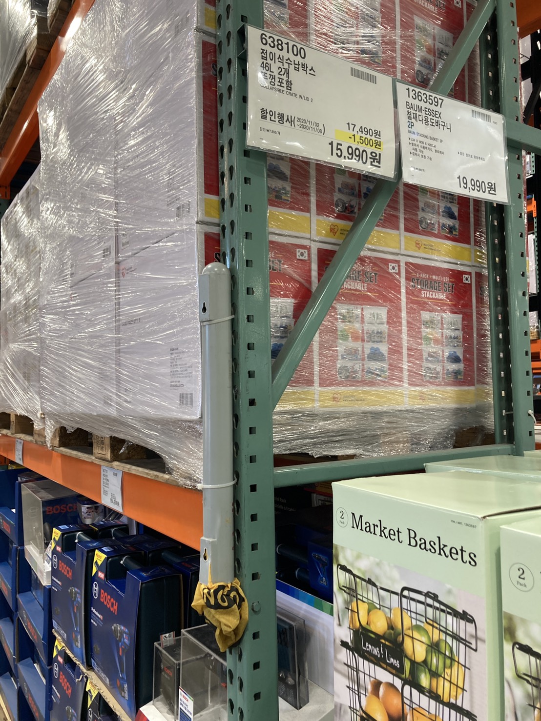 코스트코 광명점 11월 할인상품. 식품에 이어서 의류와 생활용품. 날씨가 추워지니 따뜻한 의류와 온풍기 이불 등 겨울 생활용품이 많이 전시되어있다.