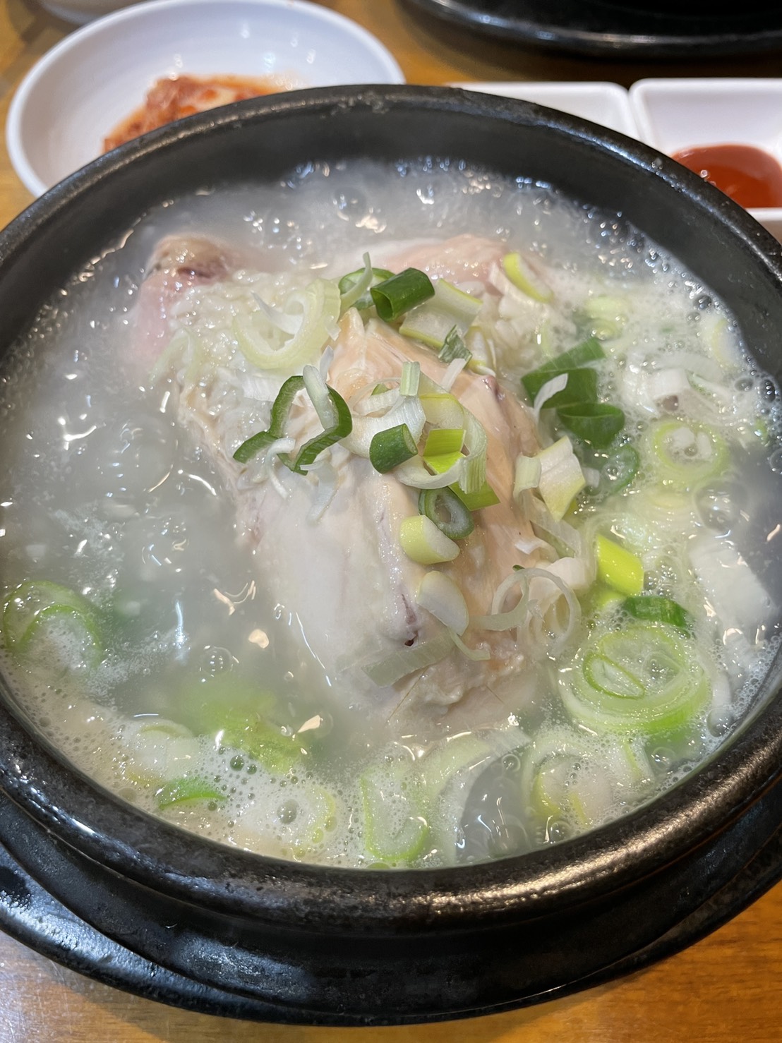 드디어 주문한 이집의 시그니쳐 메뉴 삼계탕이 나왔다. 오랜만에 맛보는 감칠맛 풍부한 진득한 육수다. 가운데에 찹쌀이 한가득이라 다 먹으면 정말 배부르다. 오랜만에 몸보신 잘한 느낌이다.
