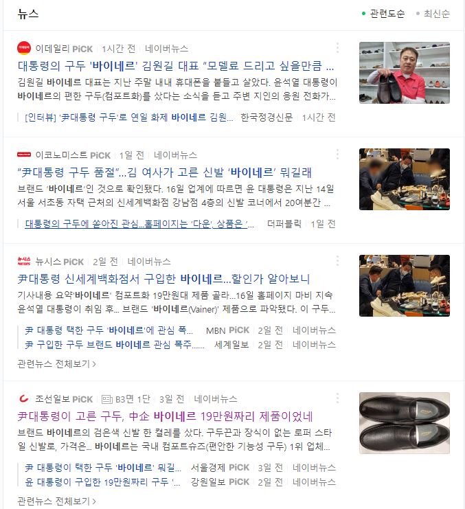 바닥면이 접지력이 좋아 쉽게 미끄러지지 않겠다. 구두가 상당히 가볍고 발이 편하다. 구입하고 나니 갑자기 뉴스에서 윤대통령이 이 구두를 구입했다고 뉴스가 쏟아진다. 윤 대통령은 19만원짜리를 구입했구나.
