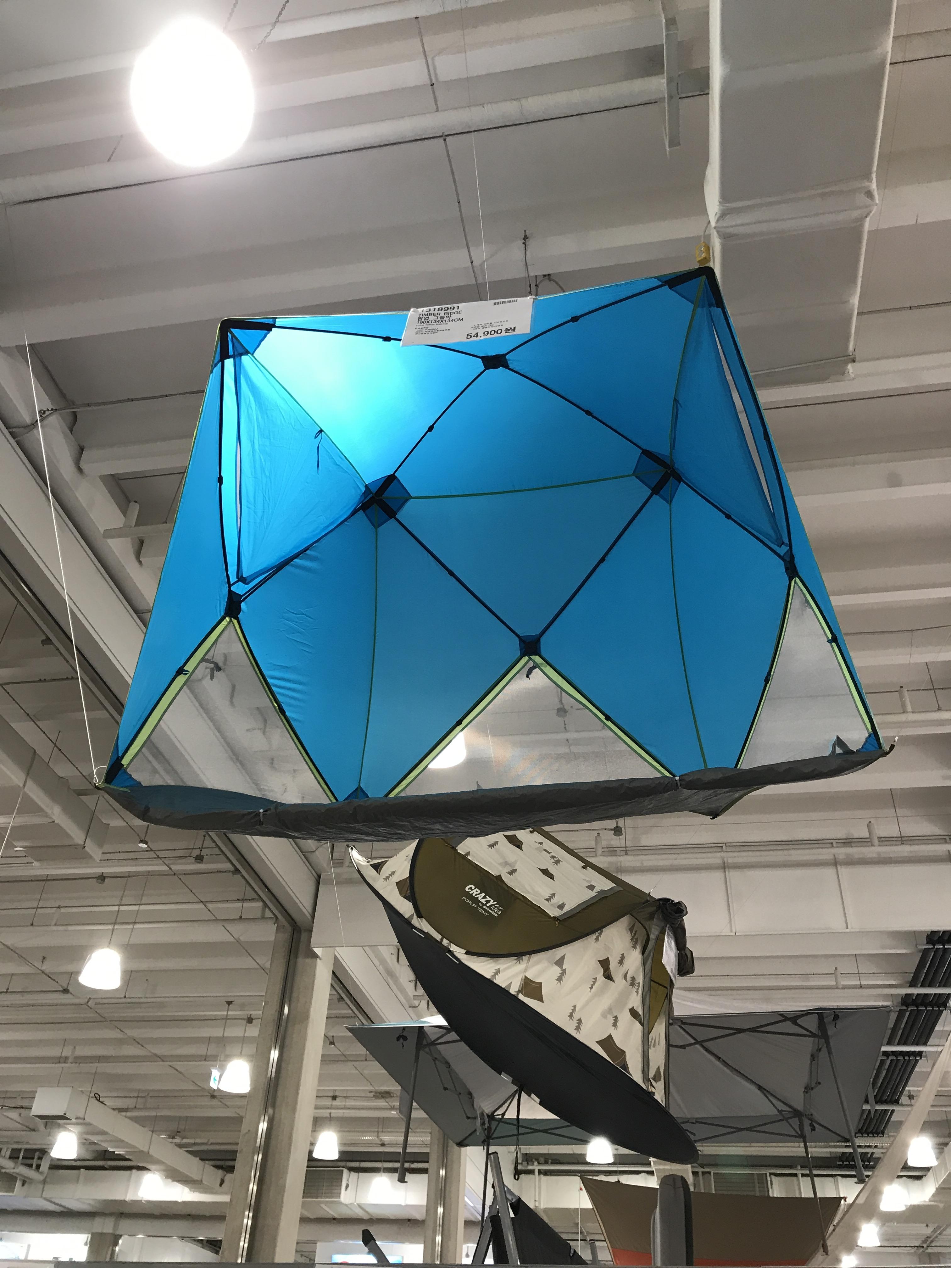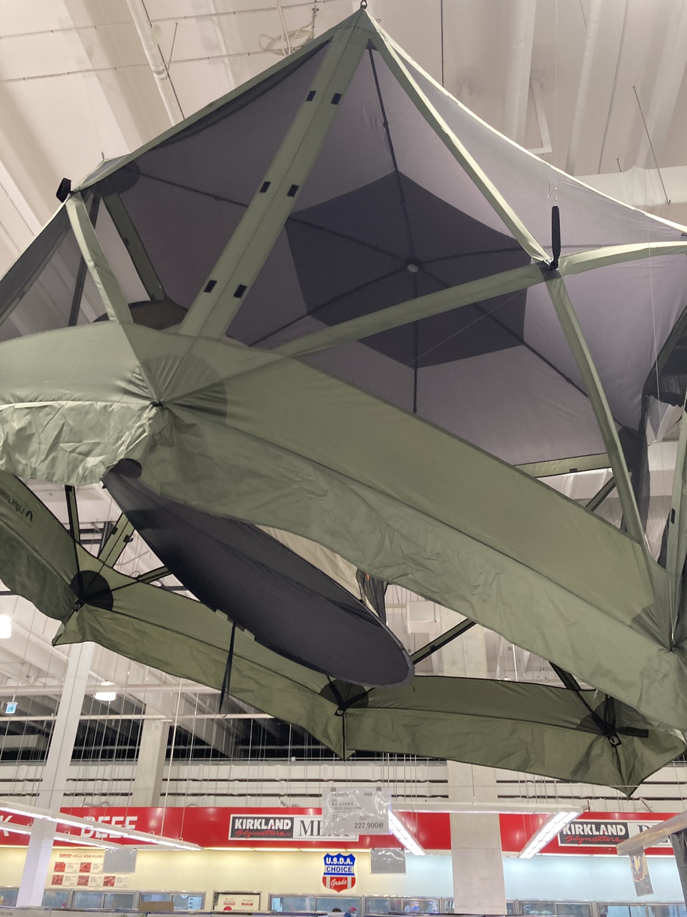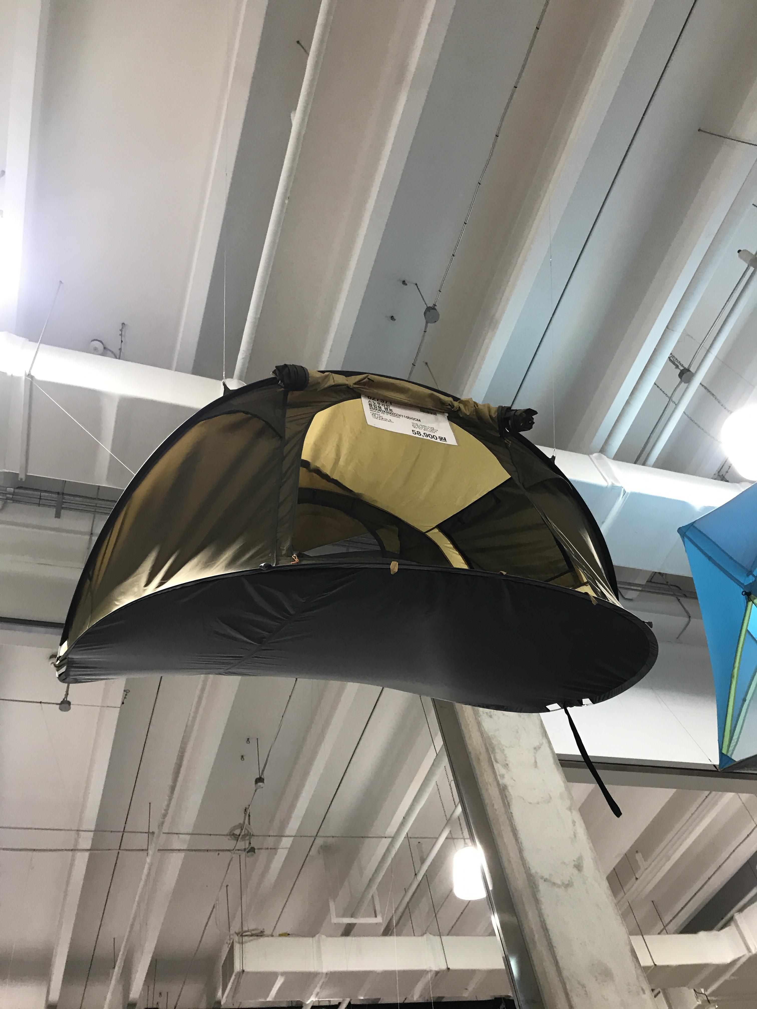가장 먼저 천장에 전시되어 있는 코베아 텐트가 보인다. 코베아 베이직 오토돔 214,900원