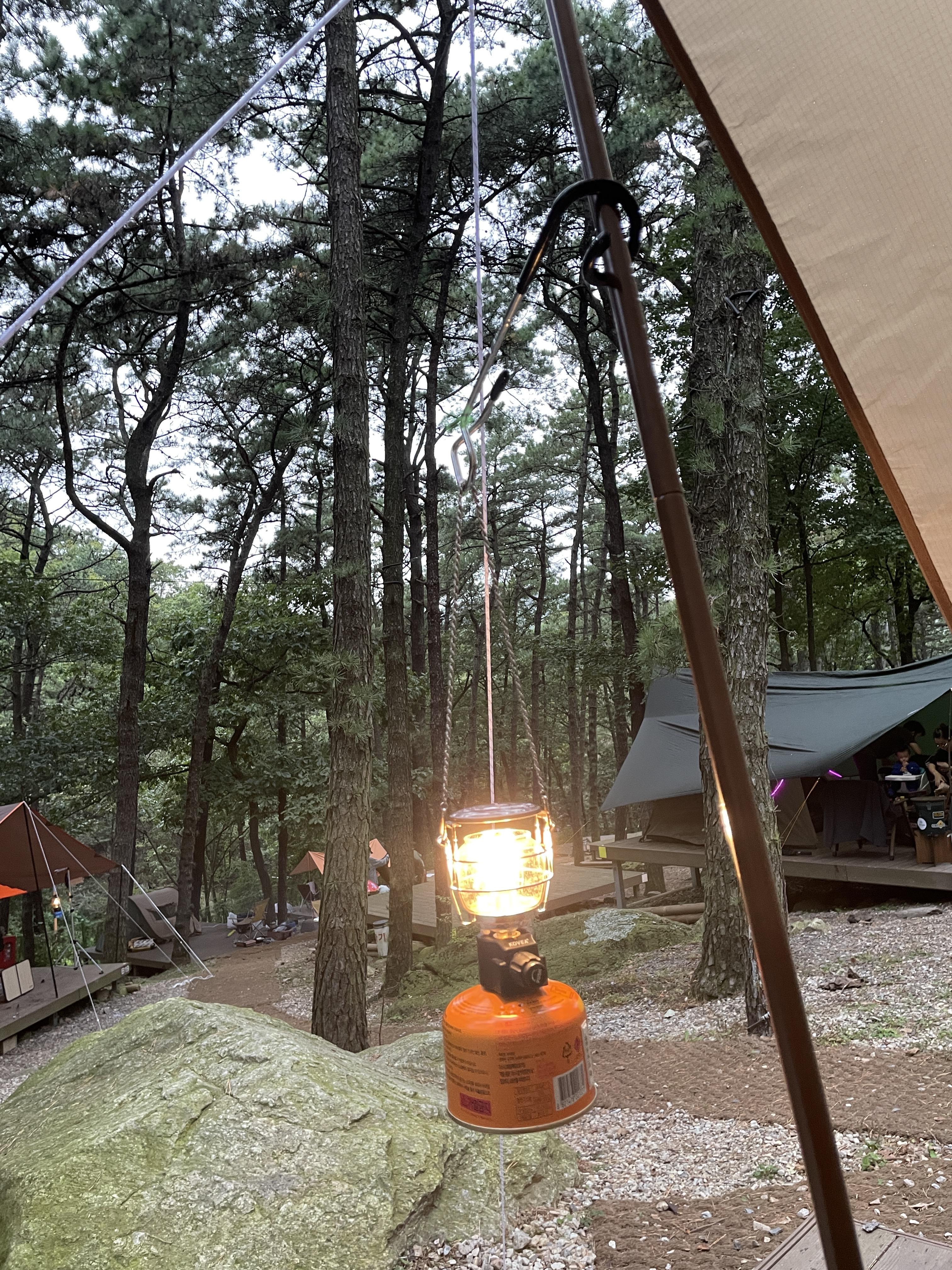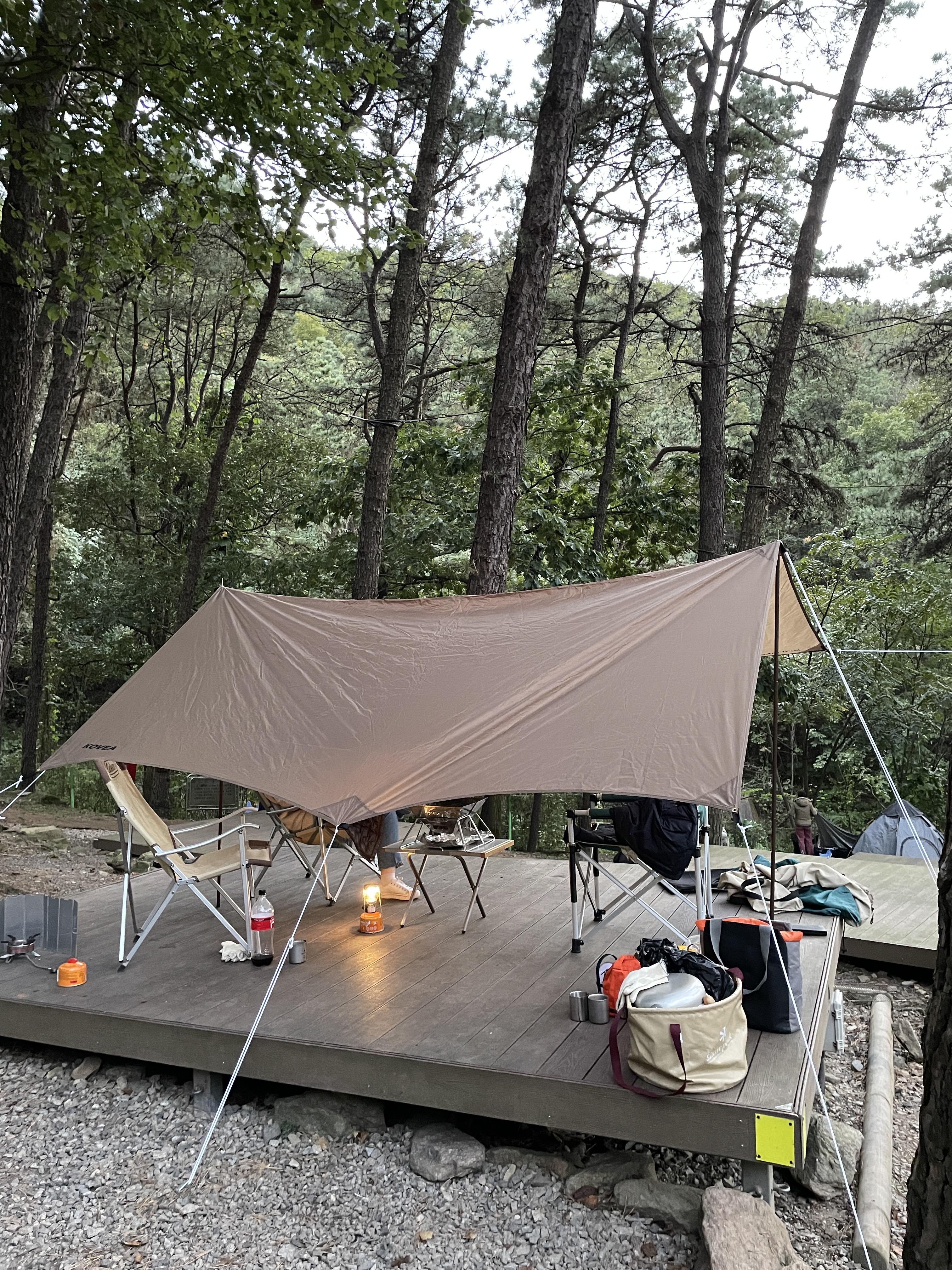 휴양림에서 사용하면 좋을 크기의 미니 타프다.